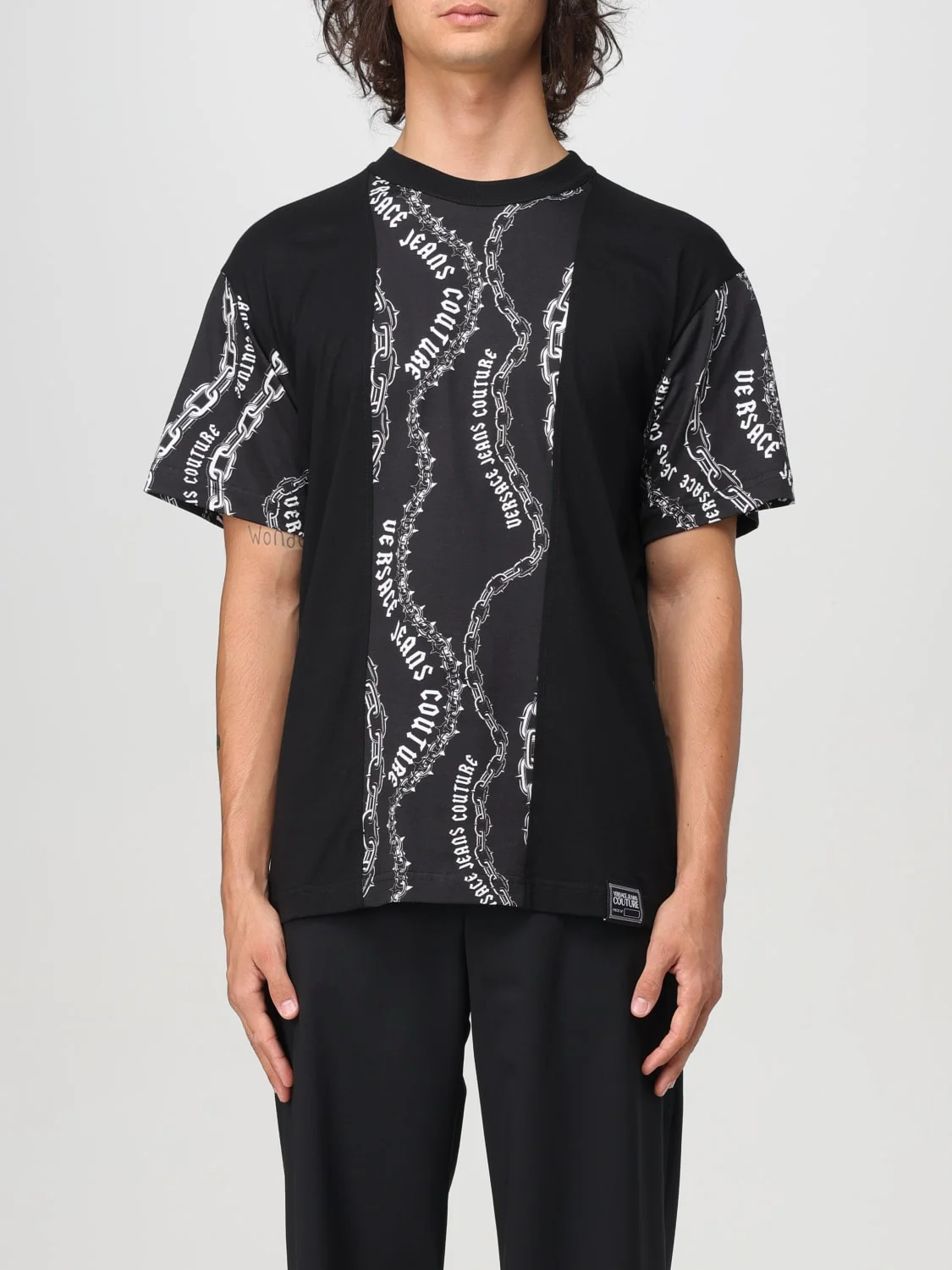 DESCRIPTION - Logo: Print - Neckline: Crewneck - Shoulders: Regular - Sleeves: Short - Materials: Cotton - Pattern: Graphic DETAILS AND CARE Composition 100% cotton SIZE AND FIT Sizes not available Size and fit Regular fit Designer code: 77GAH622JS365 899 Giglio Code: F93281 Designer: Versace Jeans Couture Collection: Versace Jeans Couture Men Category: Clothing Versace Jeans Couture