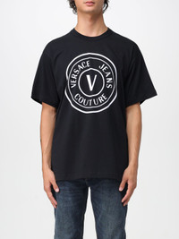 DESCRIPTION - Style: Sporty - Logo: Contrasting - Model: Crewneck - Neckline: Crewneck - Shoulders: Regular - Sleeves: Short - Bottom: With straight hemline - Materials: Cotton - Pattern: Logo DETAILS AND CARE Composition not available SIZE AND FIT Sizes not available Size and fit Regular fit Designer code: 79GAHE06CJ00E 899 Giglio Code: H36438 Designer: Versace Jeans Couture Collection: Versace Jeans Couture Men Category: Clothing Versace Jeans Couture