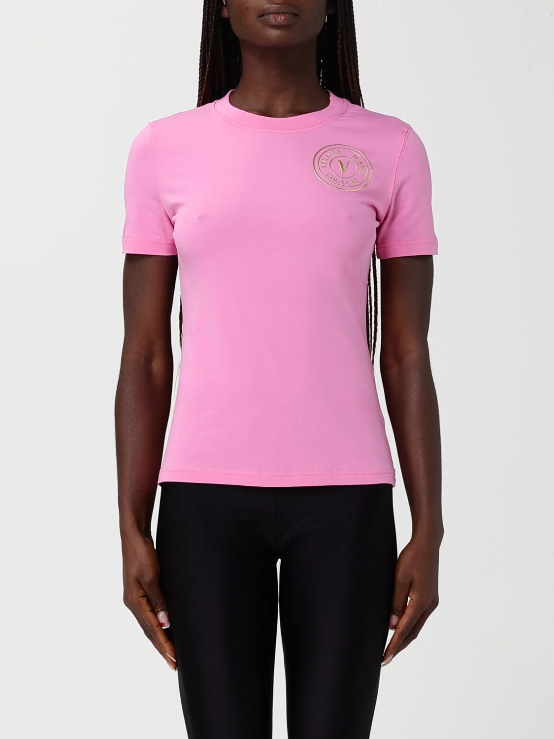 DESCRIPTION - Style: Contemporary, Sporty - Occasion: Gym, Morning - Logo: Laminated - Model: Crewneck - Neckline: Crewneck - Shoulders: Regular - Sleeves: Short - Bottom: With straight hemline - Materials: Cotton - Pattern: Logo, Plain-colored DETAILS AND CARE Composition not available SIZE AND FIT Sizes not available Size and fit Slim fit Designer code: 80HAHT02CJ03T 499 Giglio Code: H90018 Designer: Versace Jeans Couture Collection: Clothing Versace Jeans Couture Category: Clothing > T-Shirt
