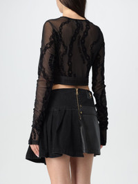 DESCRIPTION - Logo: Tone-on-tone - Neckline: Crewneck - Shoulders: Regular - Sleeves: Long - Bottom: With straight hemline - Model: Transparent - Materials: Fishnet nylon DETAILS AND CARE Composition 100co SIZE AND FIT Sizes not available Size and fit Cropped fita , Slim fit Designer code: 77HAH218JS392 899 Giglio Code: G30947 Designer: Versace Jeans Couture Collection: Versace Jeans Couture Woman Category: Clothing Versace Jeans Couture