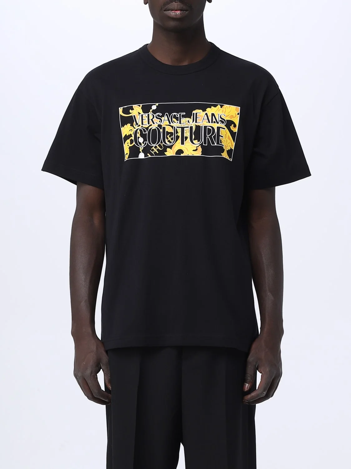 Descrizione - Casual style - Relaxed fit - Cotton - Round neckline - Ribbed profiles - Dropped shoulders - Short sleeves - Logo print and contrasting graphics - Straight hem - Machine wash DETAILS AND CARE Composition 100% COTONE SIZE AND FIT Sizes not available Designer code: 75GAHE01CJ00E G89 Giglio Code: E51065 Designer: Versace Jeans Couture Collection: Versace Jeans Couture Men Category: Clothing Versace Jeans Couture