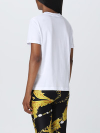 Descrizione - Casual style - Regular fit - Cotton - Round neckline - Ribbed profiles - Regular shoulders - Short sleeves - Contrast printed logo print - Straight hem - Machine wash DETAILS AND CARE Composition 100% COTONE SIZE AND FIT Sizes not available Designer code: 75HAHF01CJ00F G03 Giglio Code: E57301 Designer: Versace Jeans Couture Collection: Versace Jeans Couture Woman Category: Clothing Versace Jeans Couture