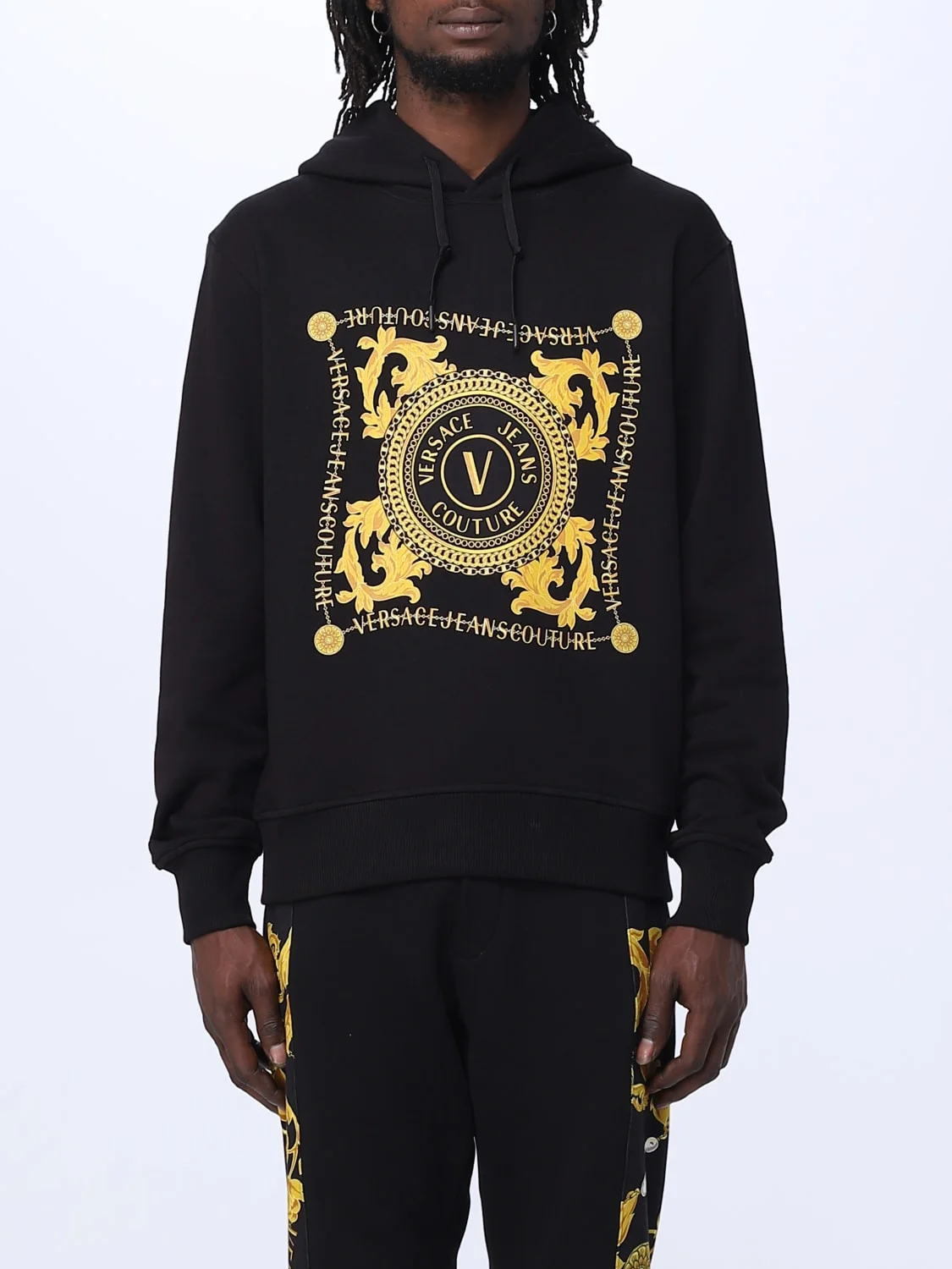 Descrizione - Casual style - Regular fit - Cotton - Collar with hood and drawstring - Regular shoulders - Long sleeves - Elasticated ribbed cuffs - Contrasting front logo print - Kangaroo pocket - Straight hem DETAILS AND CARE Composition TESSUTO 1:100% Cotone- TESSUTO 2:98% Cotone 2 SIZE AND FIT Sizes not available Designer code: 75GAIF07CF00F G89 Giglio Code: E50361 Designer: Versace Jeans Couture Collection: Versace Jeans Couture Men Category: Clothing Versace Jeans Couture