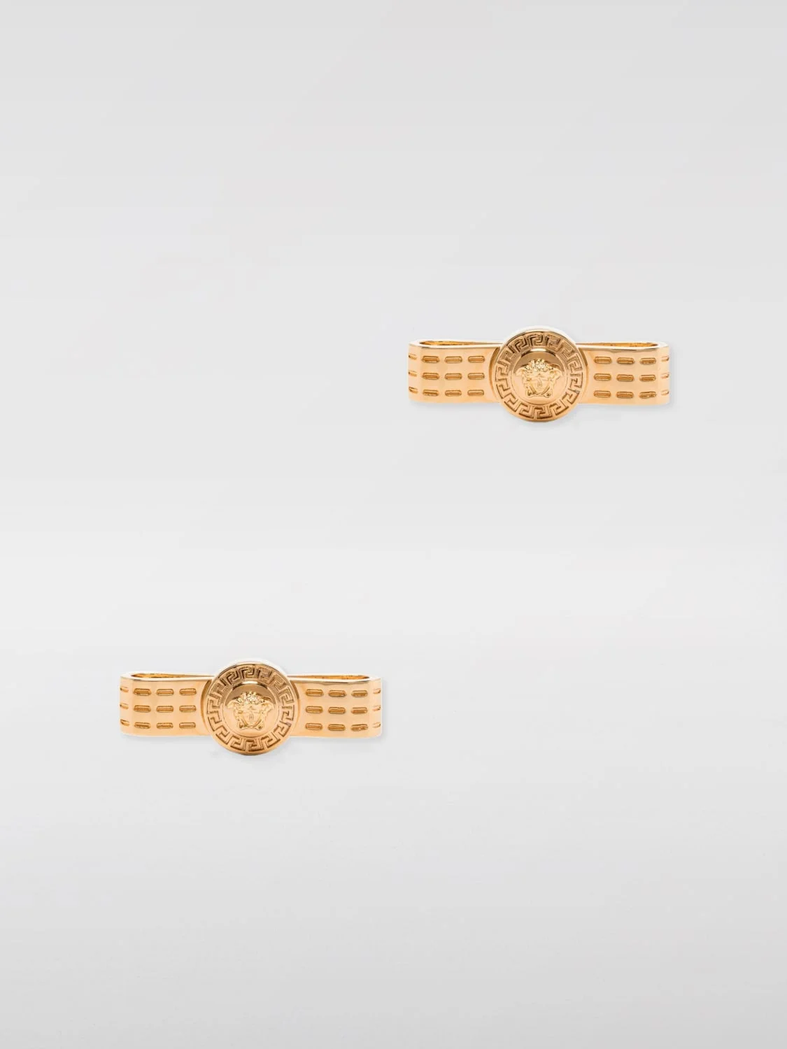 DESCRIPTION - Logo: Engraved, Lettering, Three-dimensional / embossed, Versace Medusa - Model: Button - Closure: Butterfly - Materials: Brass - Pattern: Plain-colored DETAILS AND CARE Composition Metal (Other) | 100% METAL SIZE AND FIT Sizes not available Designer code: 10171381A00620 3J000 Giglio Code: G11782 Designer: Versace Collection: Versace Woman Category: Accessories Versace