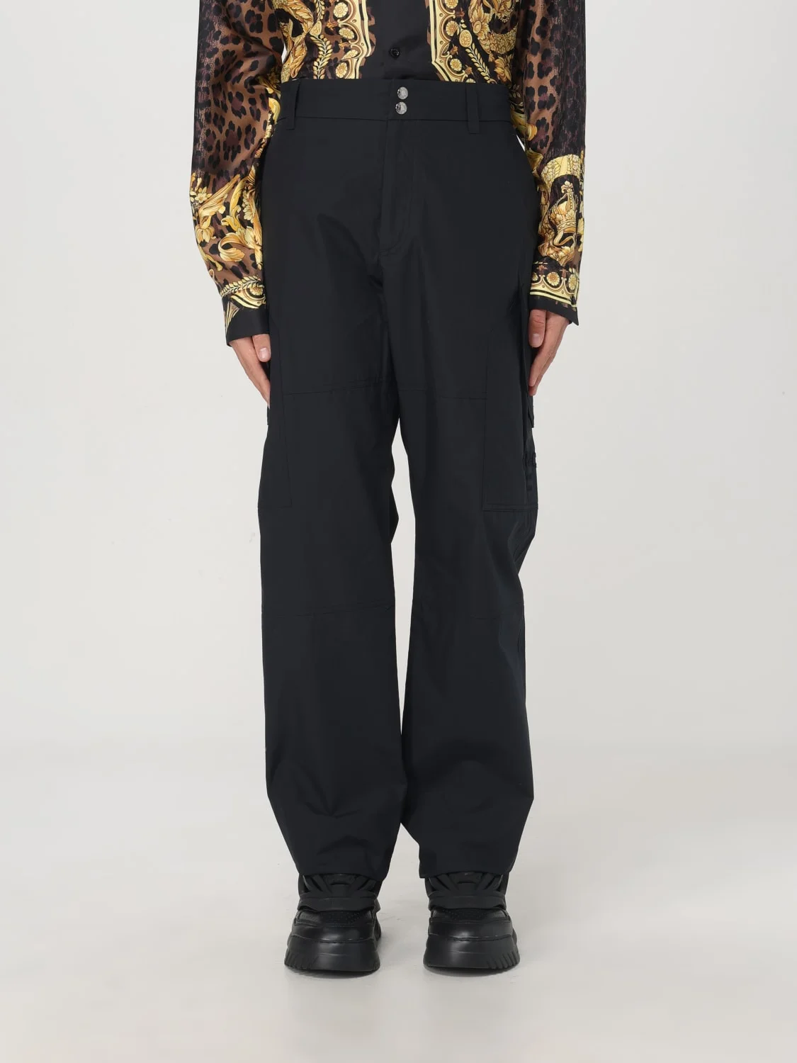 DESCRIPTION - Model: Cargo - Pockets: America , Back slit pocket, Cargo - Waist: Medium, With loops - Bottom: With straight hemline - Closure: With button and zip - Materials: Cotton - Pattern: Plain-colored DETAILS AND CARE Composition Cotton | 100% COTTON SIZE AND FIT Sizes not available Size and fit Regular fit Designer code: 10162001A11314 1B000 Giglio Code: F84288 Designer: Versace Collection: Versace Men Category: Clothing Versace
