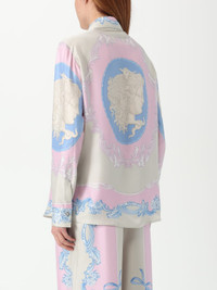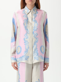 DESCRIPTION - Style: Contemporary, Pop - Neck: French - Shoulders: Regular - Closure: With buttons, Concealed - Bottom: With curved hemline - Materials: Silk - Pattern: Graphic DETAILS AND CARE Composition 100% Silk SIZE AND FIT Sizes not available Size and fit Regular fit Designer code: 10013601A14437 5PD60 Giglio Code: 427363 Designer: Versace Collection: Versace Woman Category: Clothing Versace
