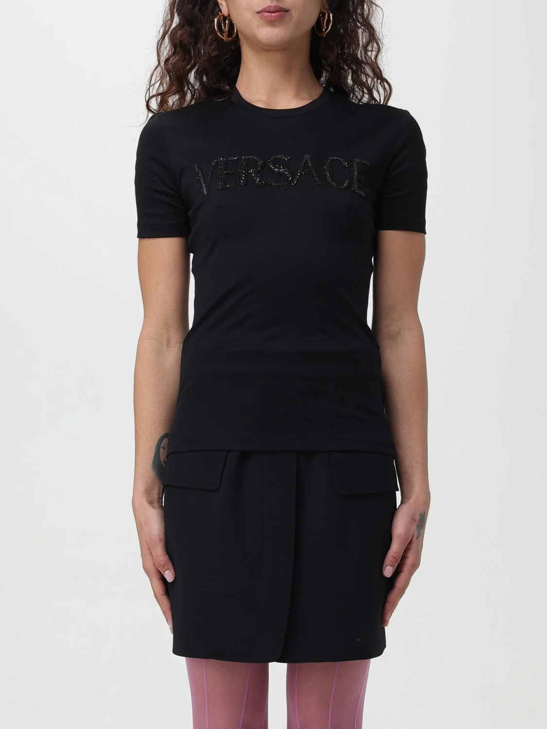 DESCRIPTION - Style: Chic - Logo: Paillettes, Rhinestone - Neckline: Crewneck - Sleeves: Short - Occasion: Morning - Materials: Cotton DETAILS AND CARE Composition 100% CO SIZE AND FIT Sizes not available Size and fit Slim fit Designer code: 10142691A01178 1B000 Giglio Code: F24139 Designer: Versace Collection: Versace Woman Category: Clothing Versace