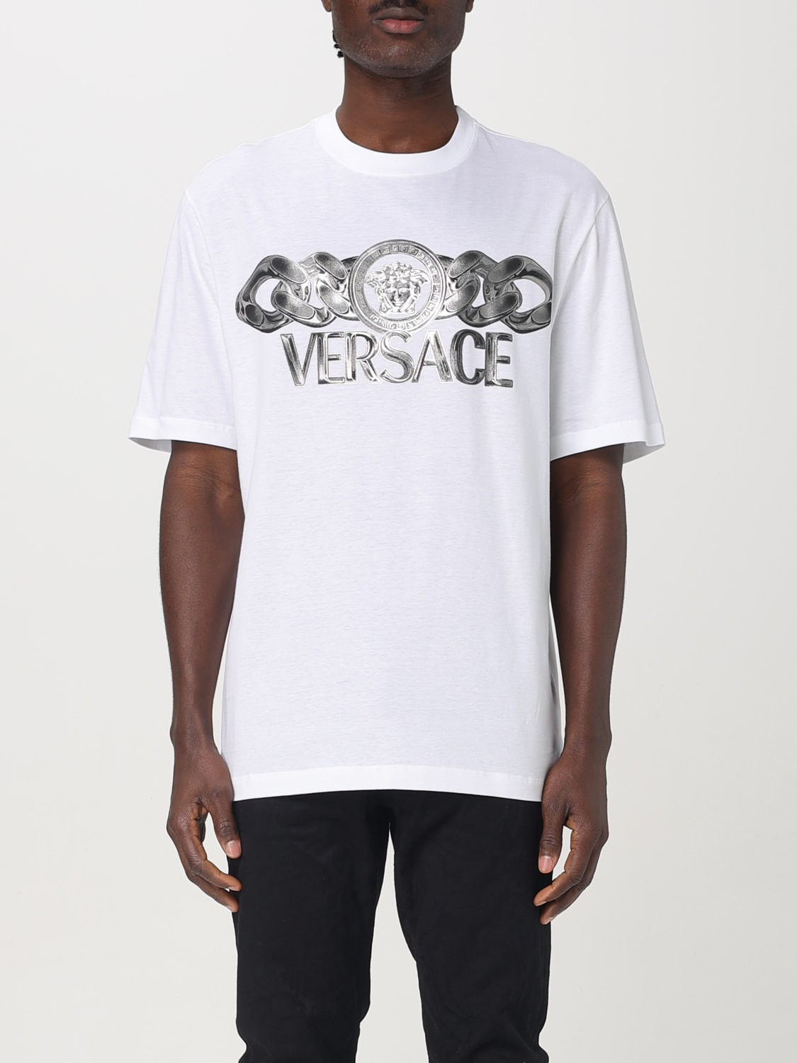 DESCRIPTION - Style: Contemporary - Logo: Print - Model: Crewneck - Neckline: Crewneck - Shoulders: Relaxed - Sleeves: Short - Bottom: With straight hemline - Materials: Cotton - Pattern: Logo DETAILS AND CARE Composition 100% cotton SIZE AND FIT Sizes not available Size and fit Regular fit Designer code: 10133021A13405 2W580 Giglio Code: G59734 Designer: Versace Collection: Versace Men Category: Clothing Versace