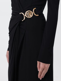 DESCRIPTION - Style: Elegant, Minimal - Model: Draped - Neckline: Deep V - Shoulders: Regular - Bottom: With straight hemline - Logo: Versace Medusa - Length: Midi dresses - Occasion: Morning dresses - Sleeves: Long sleeve dresses - Materials: Stretch viscose - Pattern: Plain-colored DETAILS AND CARE Composition 95% VISCOSE 5% ELASTAN SIZE AND FIT Sizes not available Size and fit Regular fit Designer code: 10123451A01253 1B000 Giglio Code: E82806 Designer: Versace Collection: Versace Woman Category: Clothing Versace