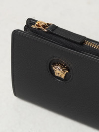 DESCRIPTION - Logo: Lettering, Metallic, Versace Medusa - Lining: 3 card slots, With horizontal banknote pocket, With laminated logo, With zip pocket - Closure: With flap and press stud - Materials: Smooth calfskin DETAILS AND CARE Composition Exterior: 100% Leather Finishing: Golden meta SIZE AND FIT Sizes Designer code: 1004664DVITALY2T 1B00V Giglio Code: F17853 Designer: Versace Collection: Versace Woman Category: Accessories Versace