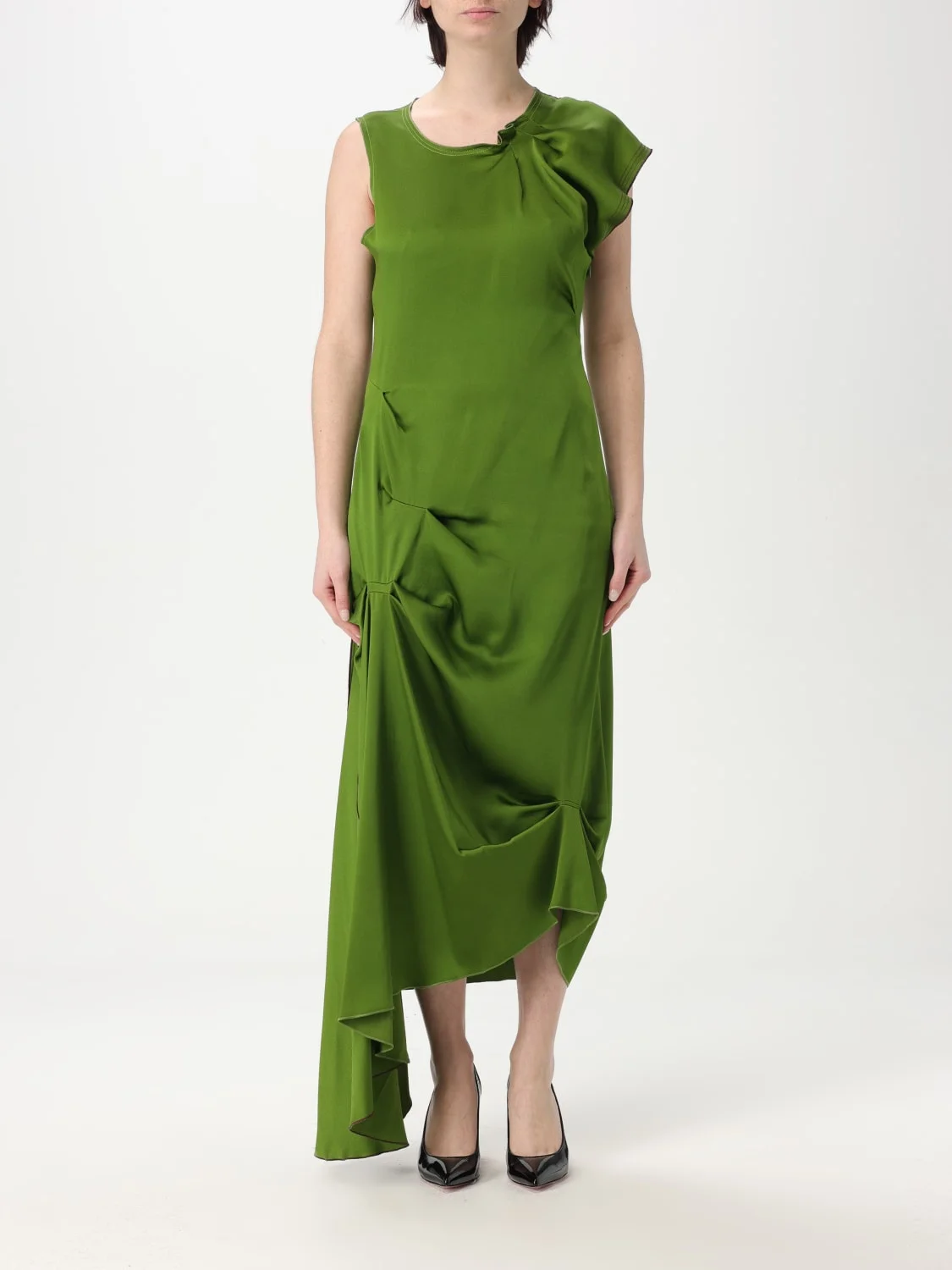 DESCRIPTION - Style: Contemporary - Shoulders: Regular - Closure: Side closure with zip - Bottom: With asymmetric hemline - Neckline: Round - Model: Asymmetric - Length: Midi dresses - Occasion: Evening and party dresses - Sleeves: Sleeveless dresses - Materials: Acetate - Pattern: Plain-colored DETAILS AND CARE Composition not available SIZE AND FIT Sizes not available Size and fit Regular fit Designer code: 1225WDR006342A ALGAE Giglio Code: G66530 Designer: Victoria Victoria Beckham Collection: Victoria Victoria Beckham Woman Category: Clothing Victoria Victoria Beckham