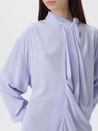 DESCRIPTION - Style: Contemporary, Minimal - Model: Asymmetric, Draped - Neck: Mandarin collar - Shoulders: Relaxed - Bottom: With asymmetric hemline - Closure: Concealed - Sleeves: Long sleeve shirts - Materials: Silk - Pattern: Plain-colored DETAILS AND CARE Composition not available SIZE AND FIT Sizes not available Size and fit Relaxed fit Designer code: 1325WSH006594A DELPHINIUM Giglio Code: H16198 Designer: Victoria Victoria Beckham Collection: Victoria Victoria Beckham Woman Category: Clothing Victoria Victoria Beckham