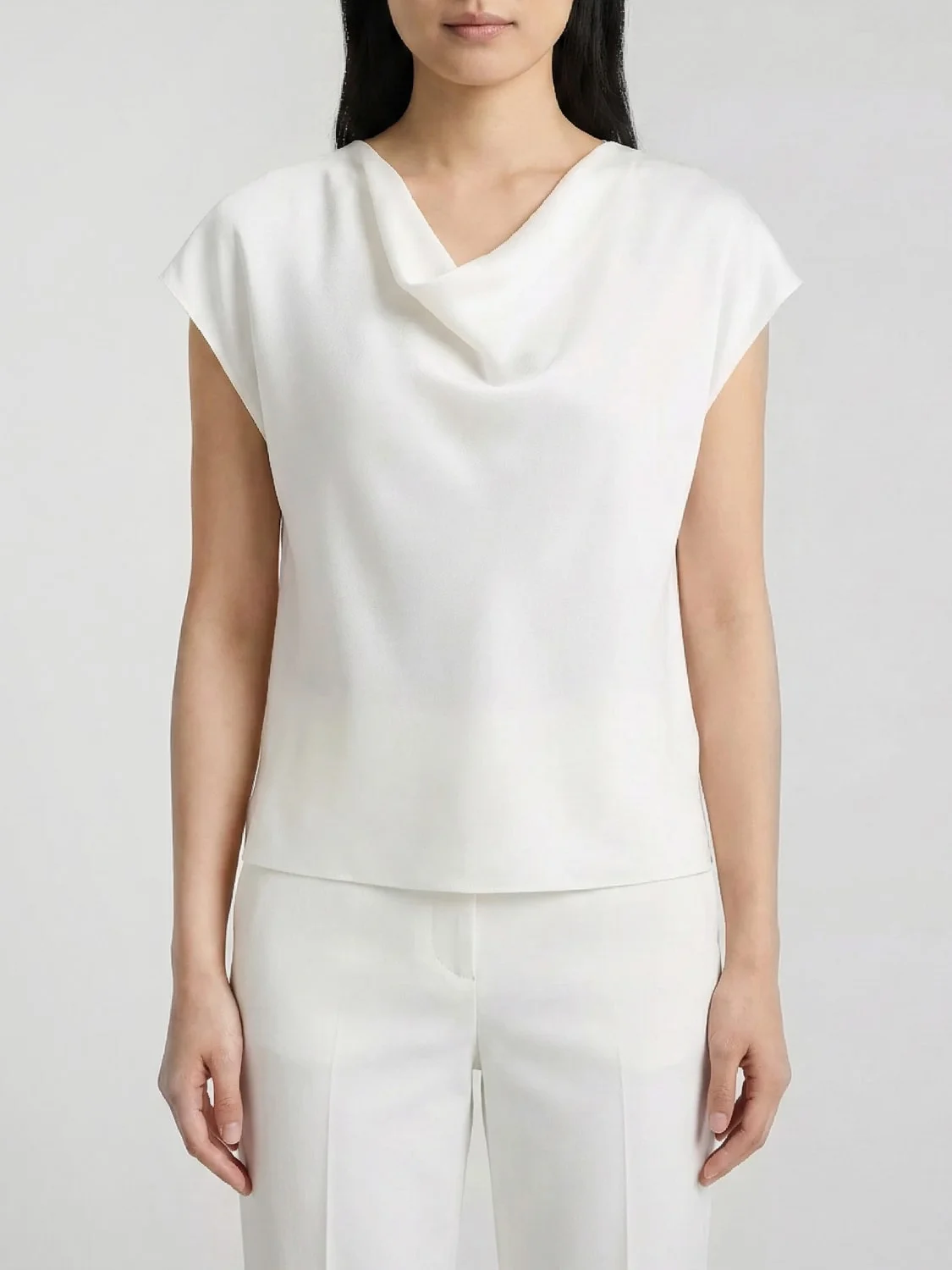 DESCRIPTION - Style: Elegant - Neckline: Draped - Shoulders: Relaxed - Bottom: With straight hemline - Sleeves: Short sleeve tops - Materials: Silk - Pattern: Plain-colored DETAILS AND CARE Composition 100% SILK. SIZE AND FIT Sizes not available Size and fit Regular fit Designer code: V796112595 101OWH Giglio Code: H93554 Designer: Vince Collection: Vince Woman Category: Clothing Vince
