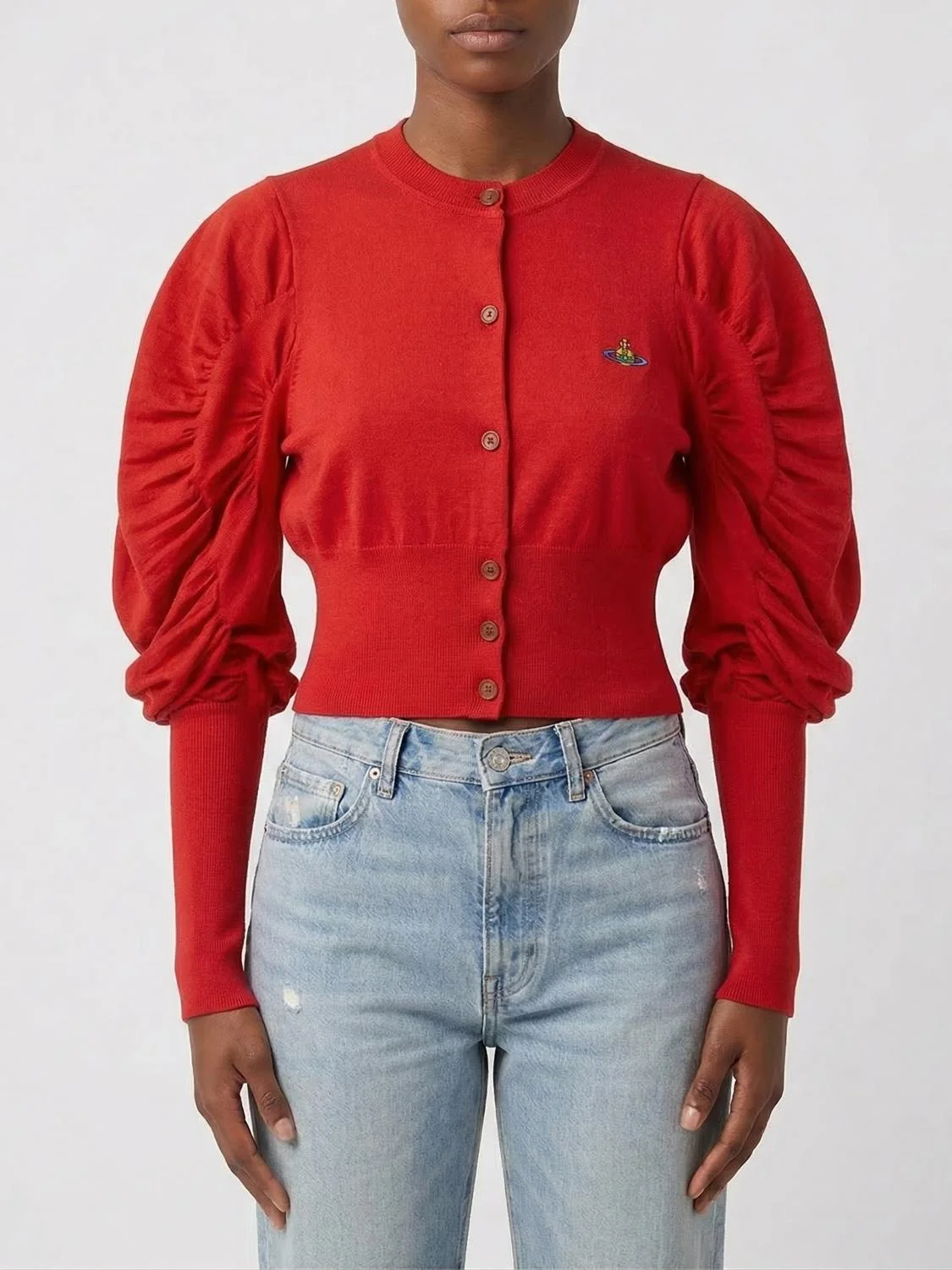 puff-sleeve cardigan
