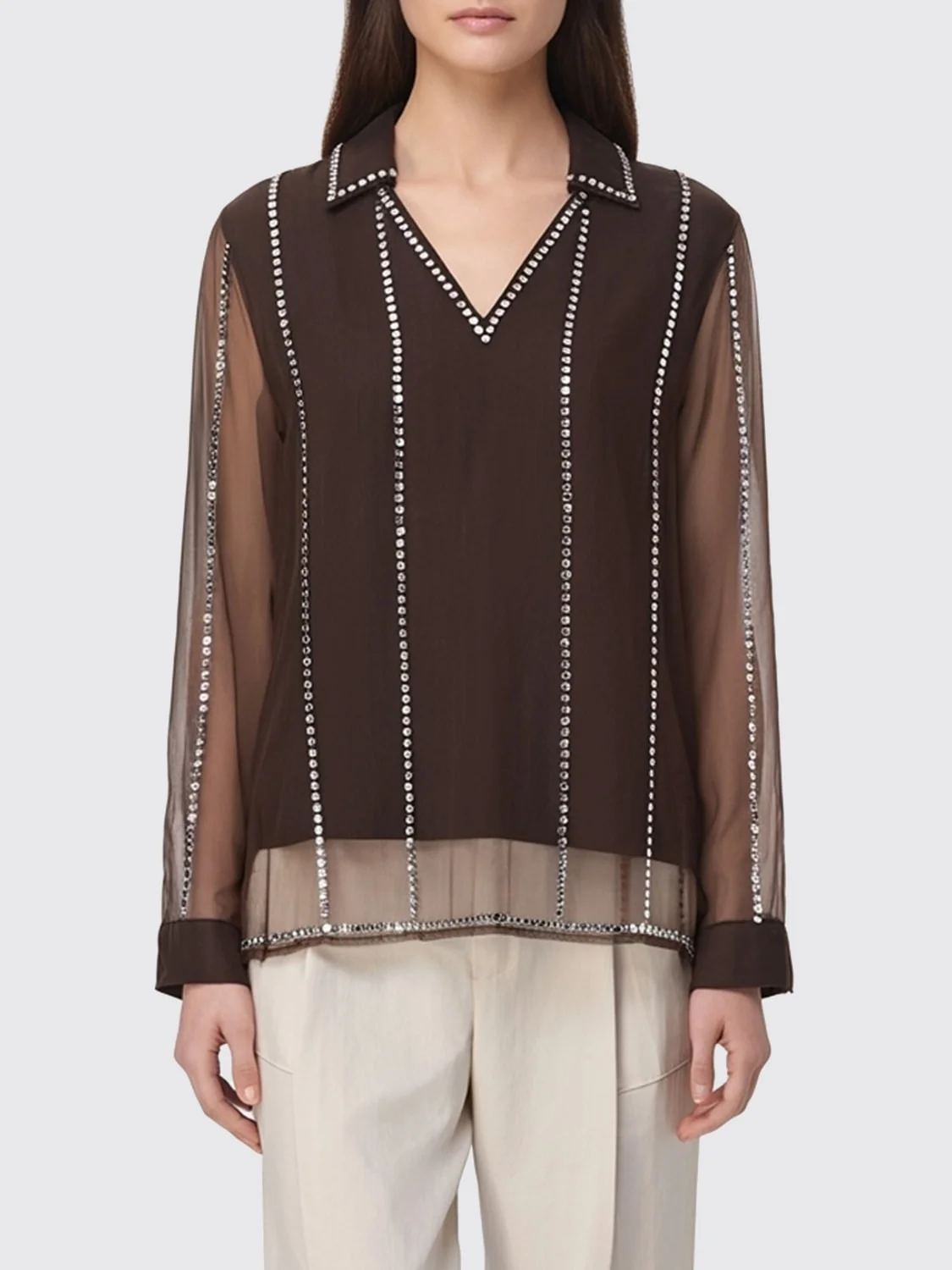 V-neck stud-embellished blouse