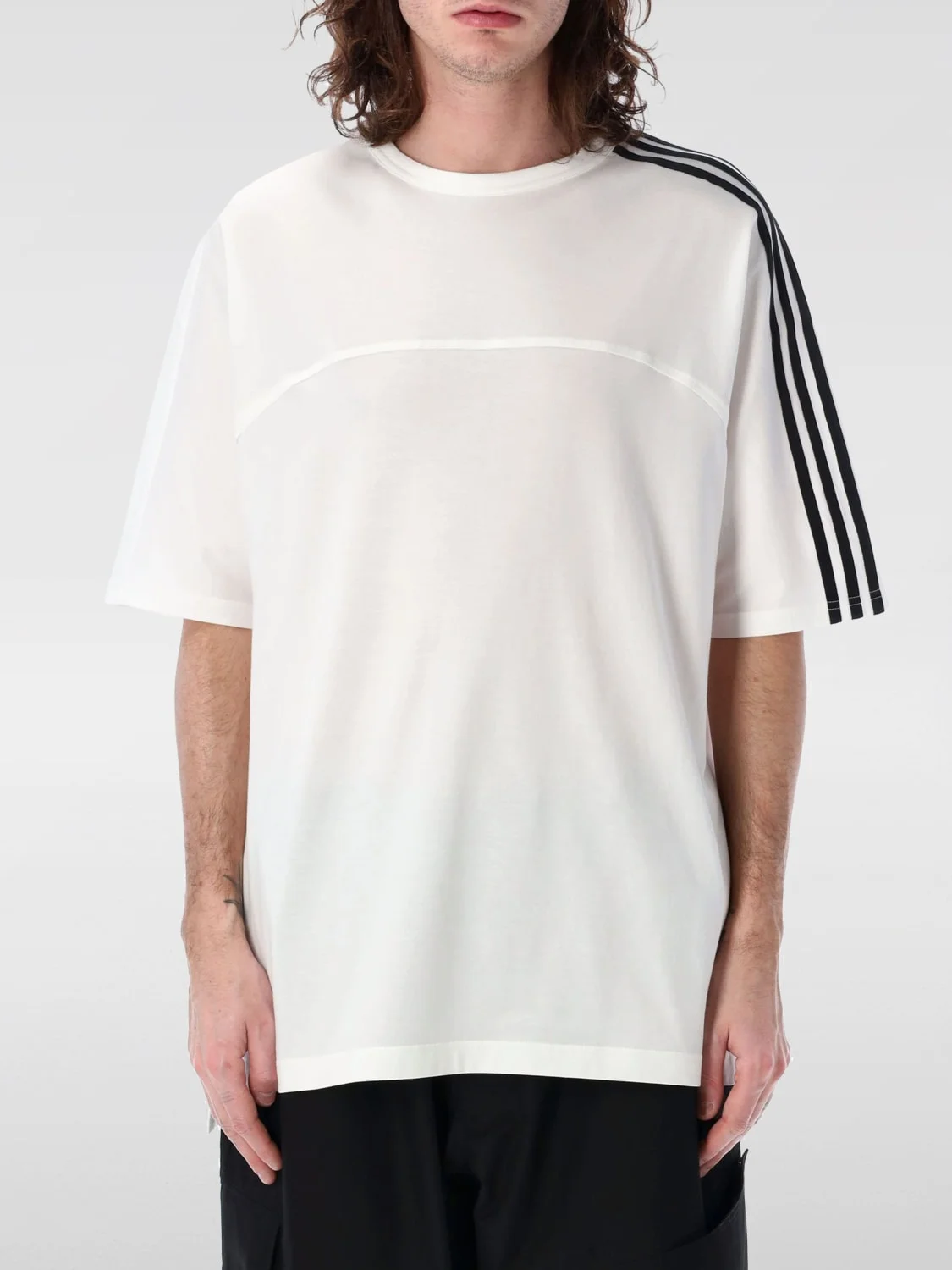 DESCRIPTION - Style: Sporty - Model: Crewneck - Neckline: Crewneck - Shoulders: Relaxed - Sleeves: Short - Bottom: With straight hemline - Logo: Adidas 3 stripes - Materials: Cotton - Pattern: Stripes DETAILS AND CARE Composition 100% cotton SIZE AND FIT Sizes not available Size and fit Oversize Designer code: JM7845 WHITE Giglio Code: G68995 Designer: Y-3 Collection: Y-3 Men Category: Clothing Y-3