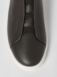DESCRIPTION - Logo: Engraved - Details: With stretch laces - Lining: Leather, With logo - Model: Slip on - Toe: Round - Ankle: Low top, Padded - Sole: Rubber - Materials: Hammered leather - Pattern: Plain-colored DETAILS AND CARE Composition PELLE DI CERVO-ODOCOILEUS VIRGINIAN 100% SIZE AND FIT Sizes not available Designer code: LHCVOS4667Z 202 Giglio Code: 436579 Designer: Zegna Collection: Zegna Men Category: Shoes Zegna