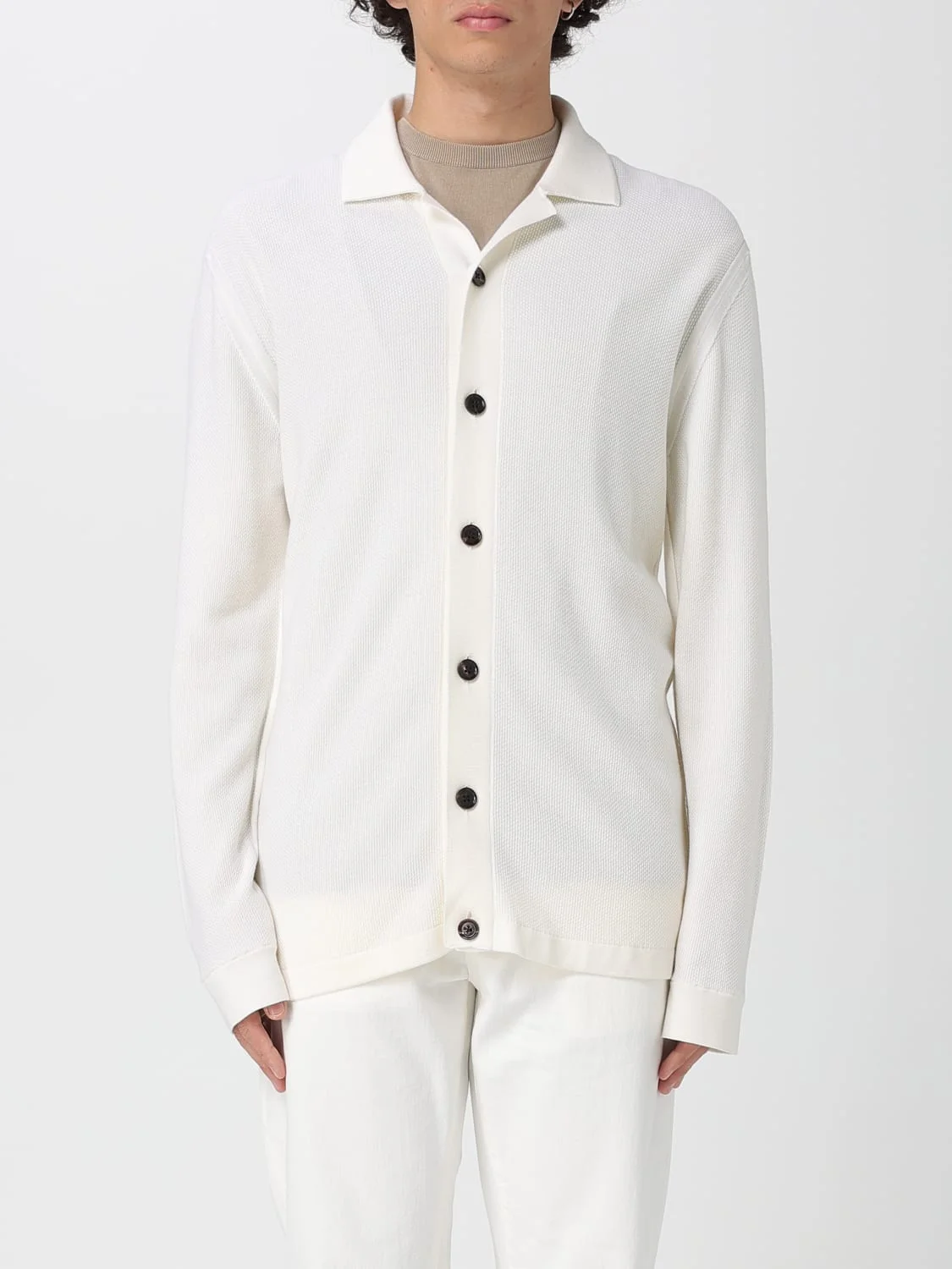 DESCRIPTION - Style: Casual, Classic - Shoulders: Relaxed - Sleeves: Long - Cuffs: Ribbed - Closure: With buttons - Bottom: With straight hemline - Neck: Ribbed - Materials: Wool - Pattern: Plain-colored DETAILS AND CARE Composition GENERAL WOOL 100 - SIZE AND FIT Sizes not available Size and fit Regular fit Designer code: UFM23A9FCT145 N01 Giglio Code: G75090 Designer: Zegna Collection: Zegna Men Category: Clothing Zegna