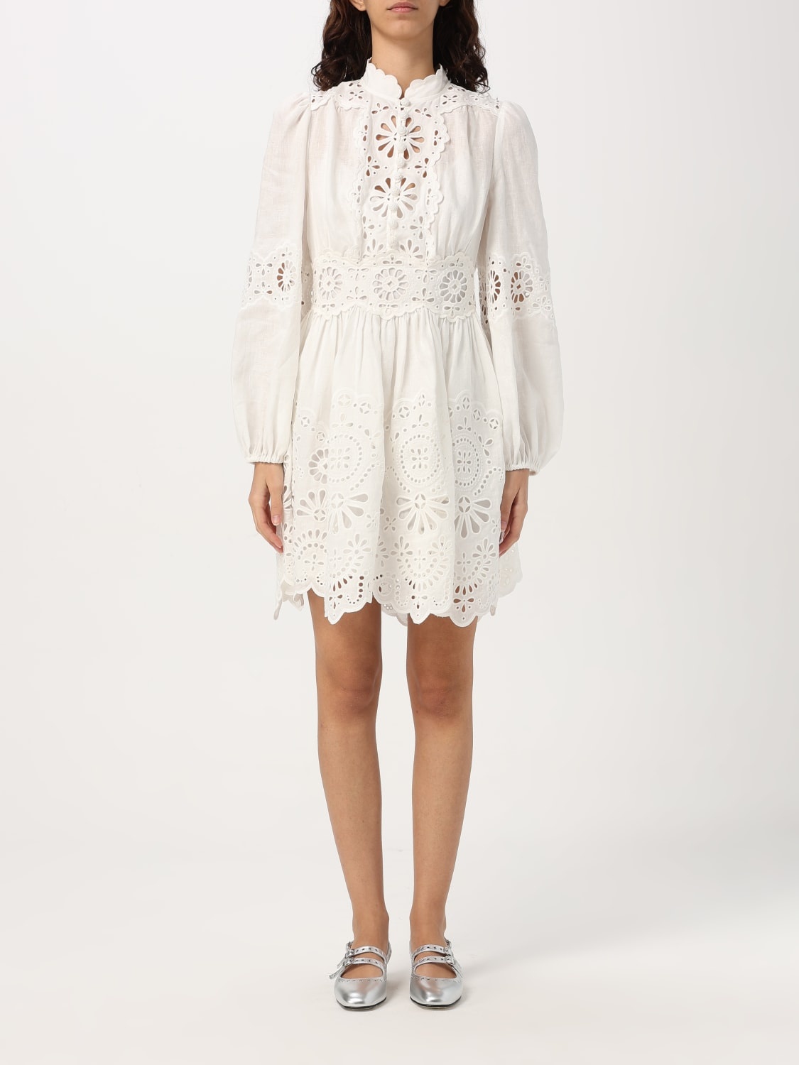 DESCRIPTION - Style: Romantic, Bohemien - Details: With lace details - Model: Chemisier - Neck: Mandarin collar - Shoulders: Regular - Sleeves: Balloon , Long sleeve dresses - Closure: Back closure with zip - Bottom: With asymmetric hemline - Materials: Lace, Linen DETAILS AND CARE Composition 100%linen, 100%polyester SIZE AND FIT Sizes not available Size and fit Regular fit Designer code: 0981DRS252 IVO Giglio Code: G40998 Designer: Zimmermann Collection: Zimmermann Woman Category: Clothing Zimmermann
