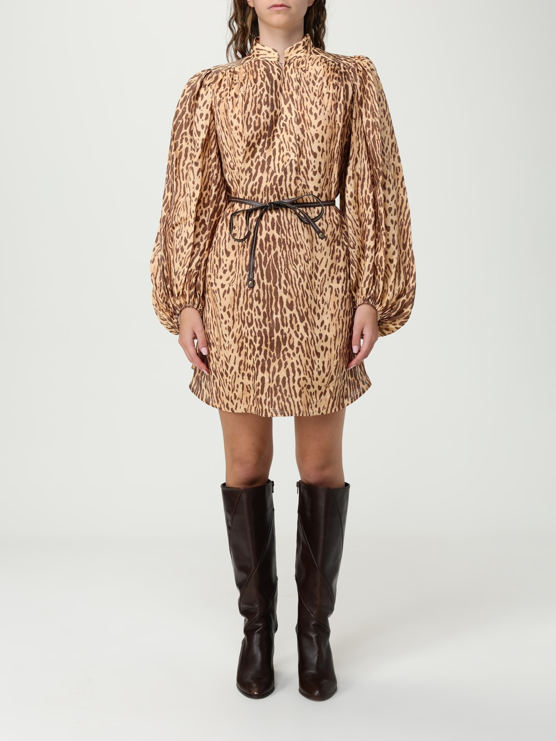 DESCRIPTION - Style: Casual - Neck: Mandarin collar - Shoulders: Regular - Sleeves: Long sleeve dresses - Waist: With adjustable belt - Bottom: With straight hemline - Length: Mini dresses - Occasion: Morning dresses - Materials: Linen - Pattern: Animal print DETAILS AND CARE Composition 100%linen SIZE AND FIT Sizes not available Size and fit Regular fit Designer code: 4593DSS255 TNLP Giglio Code: H15334 Designer: Zimmermann Collection: Zimmermann Woman Category: Clothing Zimmermann