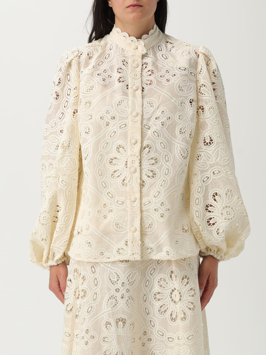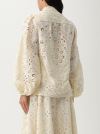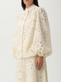 DESCRIPTION - Style: Bohemien - Neck: Mandarin collar - Shoulders: Regular - Sleeves: Long sleeve shirts - Closure: Concealed - Bottom: With straight hemline - Materials: Sangallo - Pattern: Plain-colored DETAILS AND CARE Composition 100% POLYESTER SIZE AND FIT Sizes not available Size and fit Regular fit Designer code: 4253TSS251 IVO Giglio Code: H13620 Designer: Zimmermann Collection: Zimmermann Woman Category: Clothing Zimmermann
