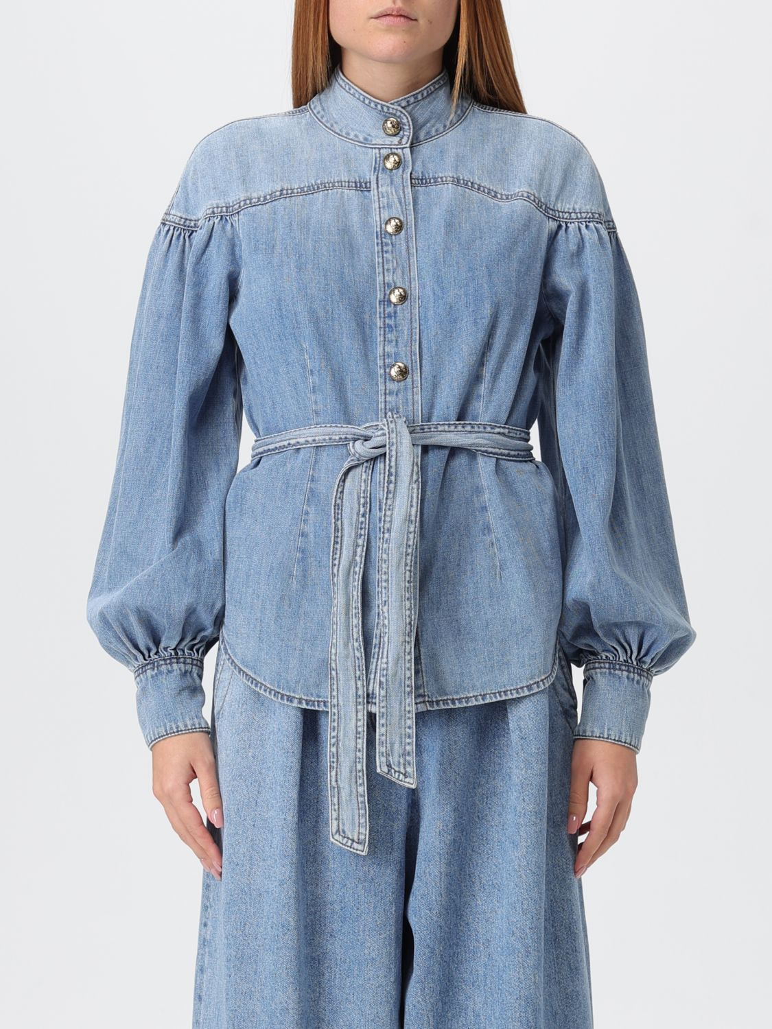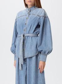 DESCRIPTION - Style: Urban-street - Neck: Mandarin collar - Shoulders: Regular - Sleeves: Long sleeve shirts - Closure: With buttons - Waist: With waist band to tie - Bottom: With curved hemline - Materials: Cotton denim - Pattern: Plain-colored DETAILS AND CARE Composition not available SIZE AND FIT Sizes not available Size and fit Regular fit Designer code: 5010TF25R DWBL Giglio Code: H34523 Designer: Zimmermann Collection: Zimmermann Woman Category: Clothing Zimmermann