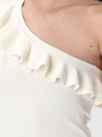 DESCRIPTION - Style: Romantic - Details: With ruffles - Neckline: Straight - Shoulders: Regular - Bottom: With straight hemline - Sleeves: One-shoulder tops - Materials: Viscose blend - Pattern: undefined DETAILS AND CARE Composition 76% viscose 21% polyamide 3% elastane SIZE AND FIT Sizes not available Size and fit Slim fit Designer code: 4397TSS251 PARC Giglio Code: H12680 Designer: Zimmermann Collection: Zimmermann Woman Category: Clothing Zimmermann