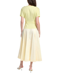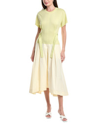 Cotton-jersey and pleated cotton-blend poplin midi dress