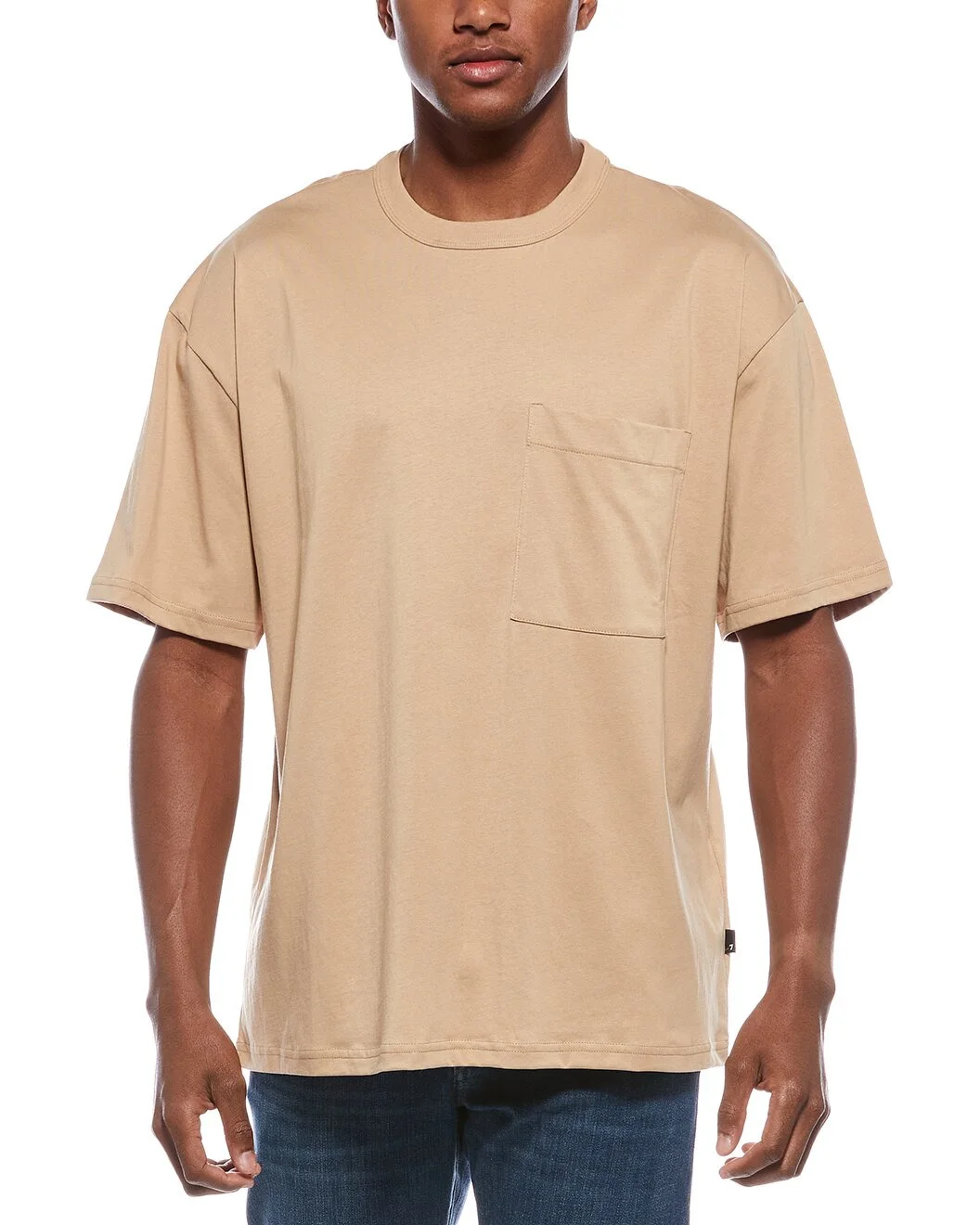 - About the brand: A denim icon. - Relaxed T-Shirt in beige with ribbed trim, and crew neck - Approximately 29in from shoulder to hem - This item tends to run large (based on Member feedback). We recommend sizing down for your best fit. Model is 6'2 and is wearing a size medium. Measurements may vary slightly by size. - 100% cotton - Machine wash - Imported - The Men's Size Guide