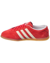 - About the brand: Innovative athletic wear for every sport. - Gazelle Lo Pro Suede Sneaker in better scarlet/cloud white suede with logo accents - Lace-up closure - Lightly padded insole - Rubber sole with traction - Imported