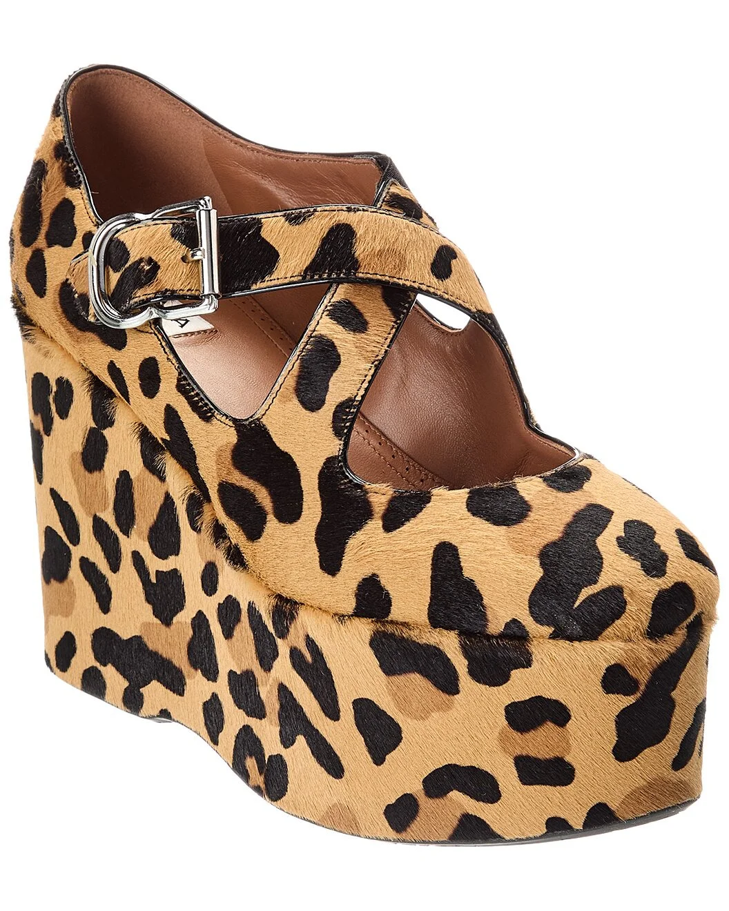 CRISS CROSS WEDGES IN LEOPARD HAIRCALF