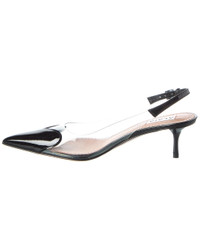 - About the brand: The epitome of elegance in women's wear. - Please note: Size selections are European. For US conversions, please reference size chart. - Made in Italy - Le Coeur Patent & Vinyl Slingback Pump in black patent leather and transparent vinyl and silver-tone hardware with pointy-toe - Adjustable ankle strap with buckle closure - Lightly padded leather insole - Smooth leather sole - 2.5in heel - Please note: All measurements are approximate and were taken from a size 37; slight variations may occur. - Our products are 100% genuine. In some cases we purchase merchandise from trusted independent suppliers and not directly from the brand owner. In all cases we stand by the authenticity of every product sold on our site. - WARNING: - CA Residents - Prop 65