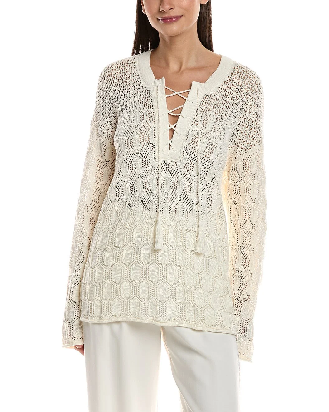 - About the brand: Bold, modern, and wearable style. - Keri Silk-Blend Sweater in off white with crochet knit, lace-up neckline and dropped-shoulder sleeves - Approximately 26.25in from shoulder to hem - This item tends to run small (based on Member feedback). We recommend sizing up for your best fit. Model is 5'9 and is wearing a size small. Measurements may vary slightly by size. - 66% cotton, 17% silk, 17% Tencel - Dry clean only - Imported