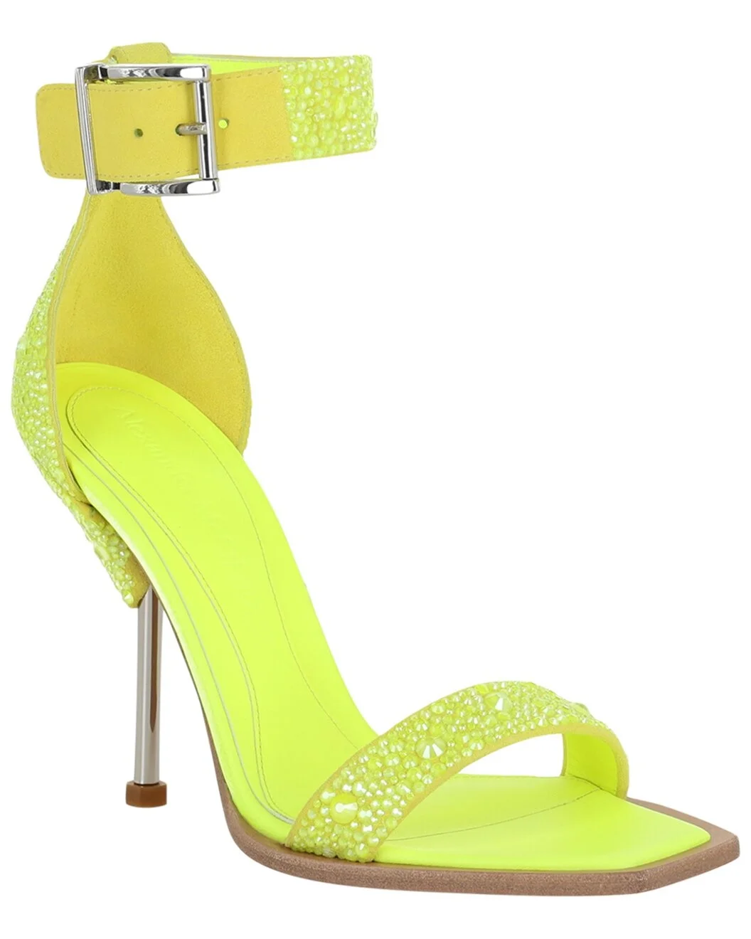 Alexander McQueen Crystal Embellished Heel Sandals Yellow Silver (Women's)