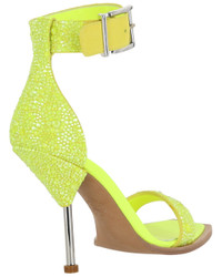 - About the brand: Romantic and rebellious British couture. - Please note: Size selections are European. For US conversions, please reference size chart. - Made in Italy - Leather Sandal in yellow/silver goatskin leather and silver-tone hardware with square toe; stiletto heel; ankle length; suede finish; tonal crystal embellishments - Buckle closure - Goatskin leather sole - 4in heel - Our products are 100% genuine. In some cases we purchase merchandise from trusted independent suppliers and not directly from the brand owner. In all cases we stand by the authenticity of every product sold on our site.