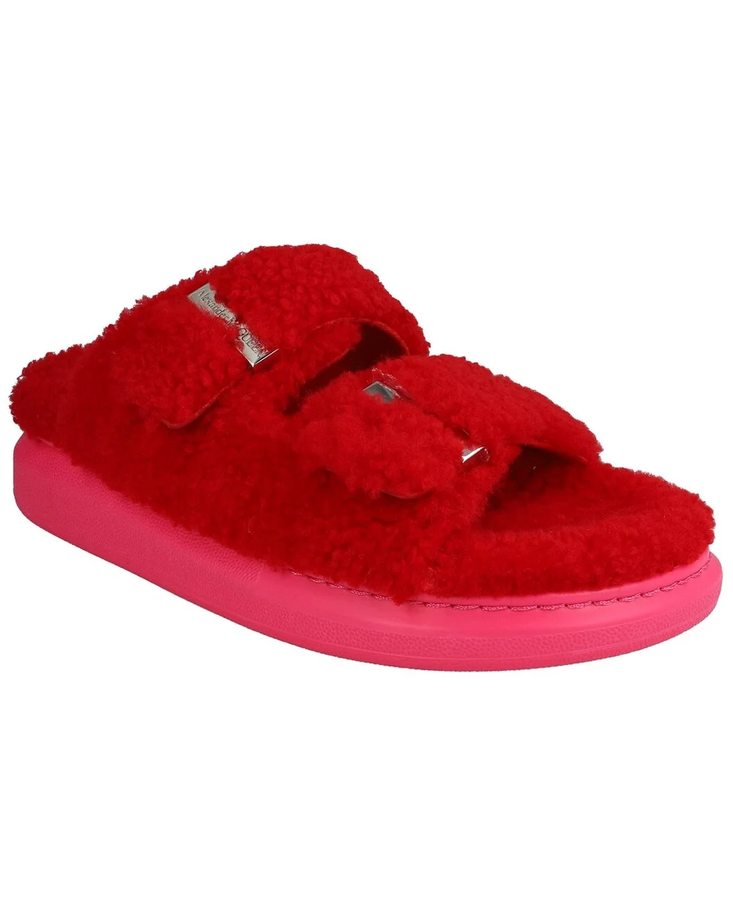 Alexander McQueen Shearling Slides Red Pink (Women's)