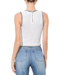- About the Product: - Cropped Wool-Blend Tank with Black Whipstitch Trim - Color/Pattern: Soft White And Black - Sleeveless Design - Crewneck - Back Zipper Closure - Black Whipstitch Trim Detail - Cropped Length - Shell: 97% Wool 2% Cotton 1% Acrylic - Wool: Domesticated Sheep (Ovis Aries Aries) - Dry clean only - Size & Fit: - Approximately 18 inches from shoulder to hem - About the Brand: - Hollywood favorite Alice + Olivia offers whimsical, flirty apparel for the modern woman - for every day and any occasion. Founded in NYC by Stacey Bendet, Alice + Olivia is inspired by femininity and a love for vintage fashion. Flattering fits and fun, colorful fabrics & prints set Alice + Olivia apart from other contemporary brands. - Please Note: - Our products are 100% genuine. In some cases we purchase merchandise from trusted independent suppliers and not directly from the brand owner. In all cases we stand by the authenticity of every product sold on our site.