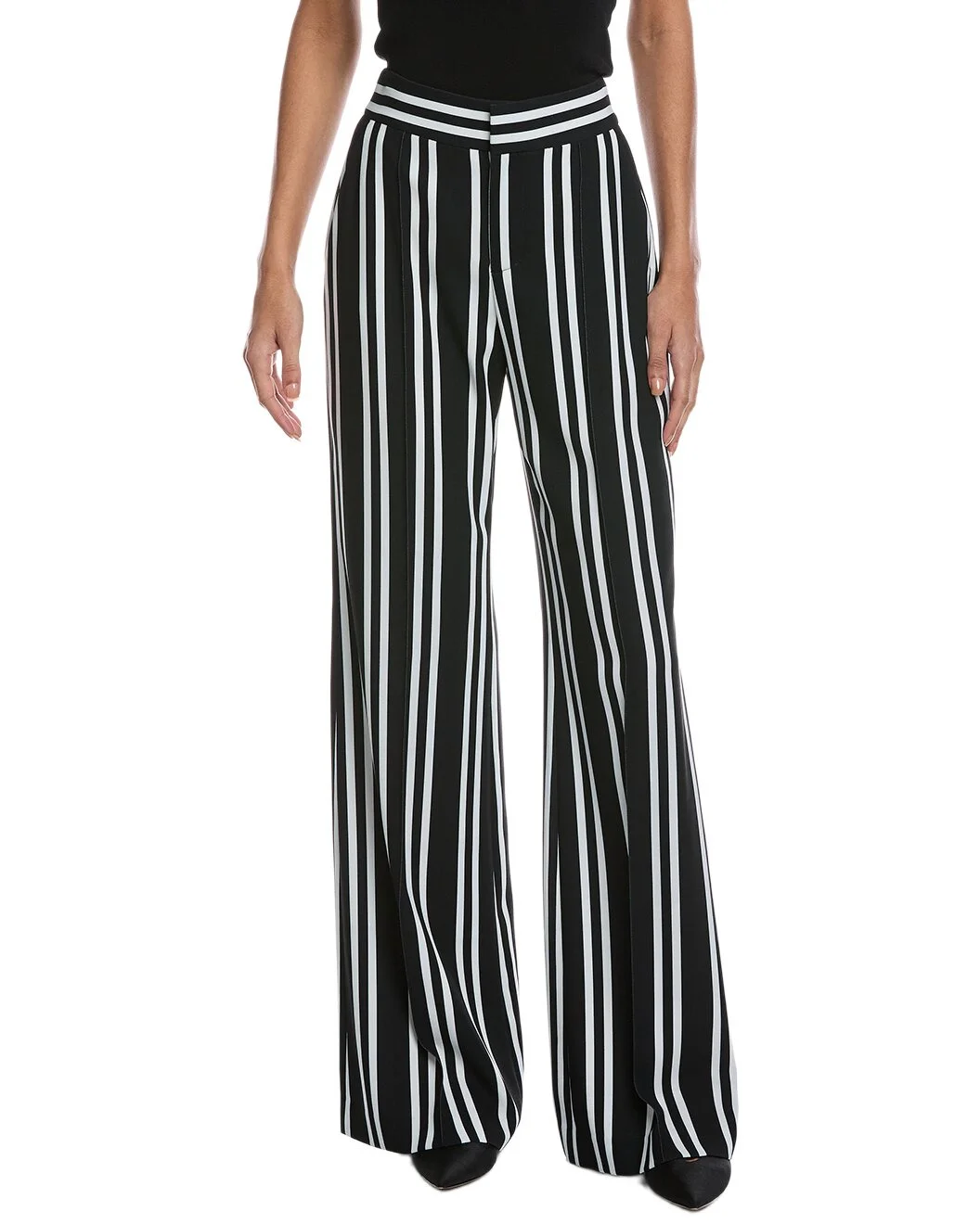 - About the brand: Hollywood favorite alice + olivia offers whimsical, flirty apparel for the modern woman - for every day and any occasion. Founded in NYC by Stacey Bendet, alice + olivia is inspired by femininity and a love for vintage fashion. Flattering fits and fun, colorful fabrics & prints set alice + olivia apart from other contemporary brands. - Pant in paddleboard stripe black/ - Inseam approximately 35.25in; 11.25in rise - Measurements taken from a size 4 and may vary slightly by size. - Shell: 64% Recycled Polyester 33% Polyester 3% Elastane - Lining: 100% Recycled Polyester - Dry clean only - Imported - Our products are 100% genuine. In some cases we purchase merchandise from trusted independent suppliers and not directly from the brand owner. In all cases we stand by the authenticity of every product sold on our site.