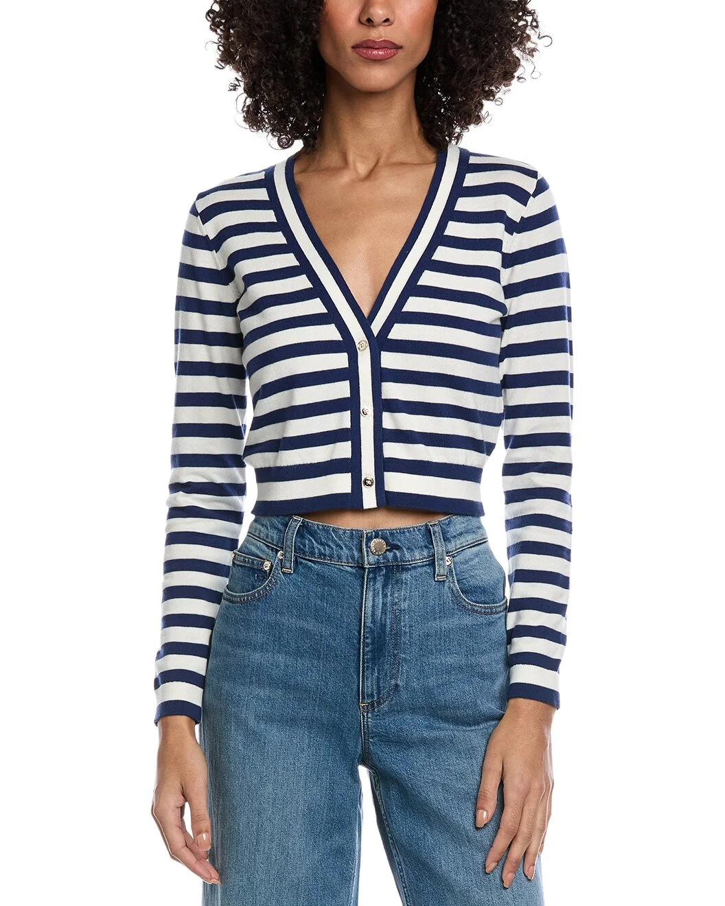- About the brand: Hollywood favorite alice + olivia offers whimsical, flirty apparel for the modern woman - for every day and any occasion. Founded in NYC by Stacey Bendet, alice + olivia is inspired by femininity and a love for vintage fashion. Flattering fits and fun, colorful fabrics & prints set alice + olivia apart from other contemporary brands. - Cardigan in indigo/soft white - Approximately 18.5in from shoulder to hem - Measurements taken from a size 4 and may vary slightly by size. - Shell: 97% Cotton 2% Nylon 1% Elastane - Dry clean only - Imported - Our products are 100% genuine. In some cases we purchase merchandise from trusted independent suppliers and not directly from the brand owner. In all cases we stand by the authenticity of every product sold on our site.
