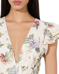 - About the brand: Hollywood favorite alice + olivia offers whimsical, flirty apparel for the modern woman - for every day and any occasion. Founded in NYC by Stacey Bendet, alice + olivia is inspired by femininity and a love for vintage fashion. Flattering fits and fun, colorful fabrics & prints set alice + olivia apart from other contemporary brands. - Kessie Ruffle Sleeve Romper in sweet nothings - Approximately 31.5in from shoulder to hem - Measurements taken from a size 4 and may vary slightly by size. - Shell: 100% Cotton - Lining: 95% Recycled Polyester 5% Elastane - Dry clean only - Imported - Our products are 100% genuine. In some cases we purchase merchandise from trusted independent suppliers and not directly from the brand owner. In all cases we stand by the authenticity of every product sold on our site.