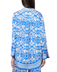- About the brand: Hollywood favorite alice + olivia offers whimsical, flirty apparel for the modern woman - for every day and any occasion. Founded in NYC by Stacey Bendet, alice + olivia is inspired by femininity and a love for vintage fashion. Flattering fits and fun, colorful fabrics & prints set alice + olivia apart from other contemporary brands. - Shirt in soiree true blue - Approximately 29in from shoulder to hem - Measurements taken from a size 4 and may vary slightly by size. - Shell: 100% Polyester - Lining: 95% Recycled Polyester 5% Elastane - Dry clean only - Imported - Our products are 100% genuine. In some cases we purchase merchandise from trusted independent suppliers and not directly from the brand owner. In all cases we stand by the authenticity of every product sold on our site.