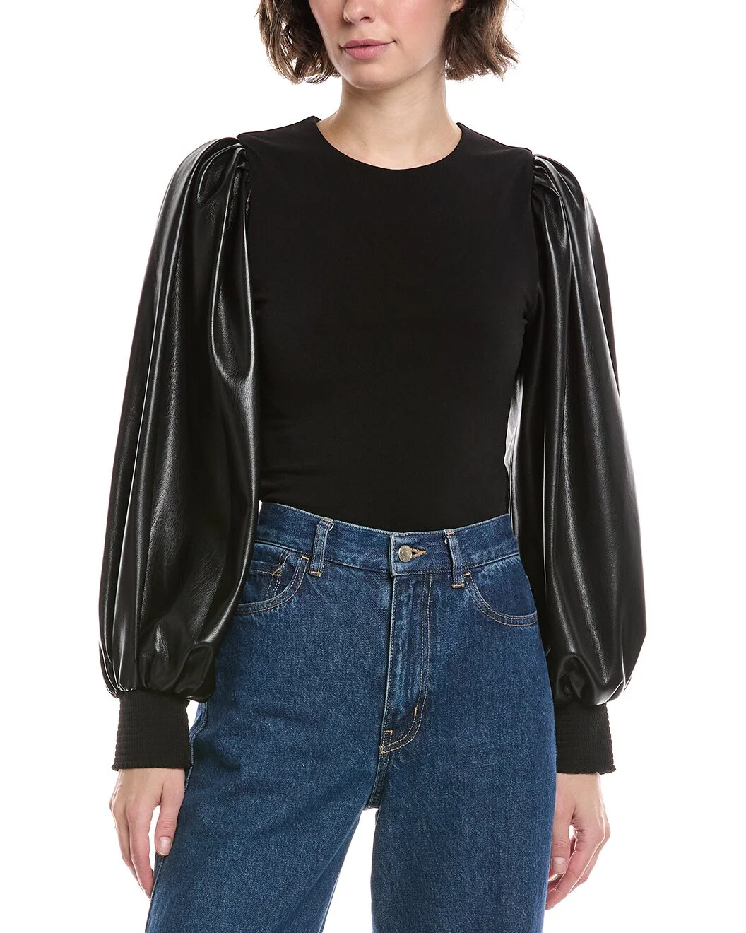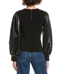 CARMINA VEGAN LEATHER SLEEVE BLOUSE