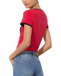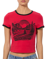 - About the brand: Hollywood favorite alice + olivia offers whimsical, flirty apparel for the modern woman - for every day and any occasion. Founded in NYC by Stacey Bendet, alice + olivia is inspired by femininity and a love for vintage fashion. Flattering fits and fun, colorful fabrics & prints set alice + olivia apart from other contemporary brands. - Onie Baby Ringer T-Shirt in get back out there - Approximately 19in from shoulder to hem - Measurements taken from a size 4 and may vary slightly by size. - Shell: 100% CottonCombo: 97% Cotton 3% Elastane - Dry clean only - Imported - Our products are 100% genuine. In some cases we purchase merchandise from trusted independent suppliers and not directly from the brand owner. In all cases we stand by the authenticity of every product sold on our site.