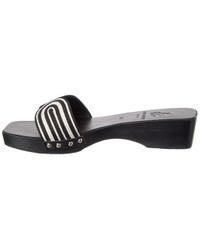 - Please note: Size selections are European. For US conversions, please reference size chart. - Color/material: black/white textile - Design details: silver-tone hardware - Smooth insole - Man-made sole - 2in heel - 1in platform - Please note: All measurements are approximate and were taken from a size 37; slight variations may occur. - Imported