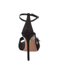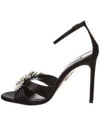 - About the brand: Sophisticated, sexy, & fun. - Please note: Size selections are European. For US conversions, please reference size chart. - Made in Italy - Crystal Margarita 105 Satin Sandal in black satin and silver-tone hardware with cutout design and crystal embellishments - Adjustable ankle strap with buckle closure - Lightly padded leather insole - Smooth leather sole - 4.5in heel - Please note: All measurements are approximate and were taken from a size 37; slight variations may occur. - Our products are 100% genuine. In some cases we purchase merchandise from trusted independent suppliers and not directly from the brand owner. In all cases we stand by the authenticity of every product sold on our site.