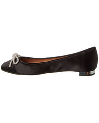 - About the brand: Sophisticated, sexy, & fun. - Please note: Size selections are European. For US conversions, please reference size chart. - Made in Italy - Parisina Crystal Satin Flat in black satin and silver-tone hardware with crystal-embellished bow - Lightly padded leather insole - Smooth leather sole - Our products are 100% genuine. In some cases we purchase merchandise from trusted independent suppliers and not directly from the brand owner. In all cases we stand by the authenticity of every product sold on our site.