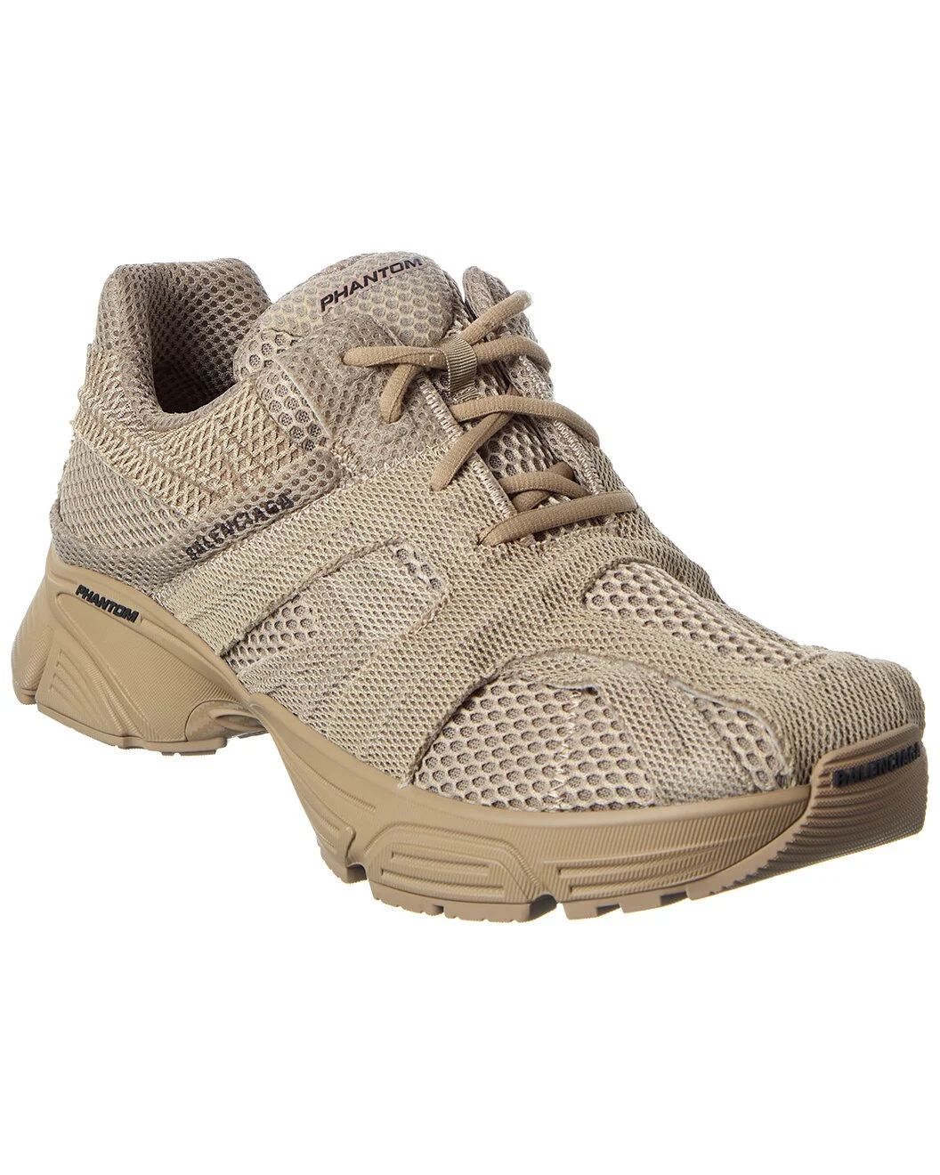 - About the brand: Recognized as one of the most influential names in fashion, Balenciaga has a reputation of uncompromising standards. Unmistakable, ultra-modern shapes and high-concept collections set Balenciaga apart, from runway to ready-to-wear. High-end collaborations and a renewed focus on fine-crafted handbags and footwear earn the brand a coveted spot as a viral, celebrity favorite. - Please note: Size selections are European. For US conversions, please reference size chart. - Made in Italy - Phantom Mesh Sneaker in beige mesh with logo accents - Lace-up closure - Lightly padded insole - Rubber sole with traction - Our products are 100% genuine. In some cases we purchase merchandise from trusted independent suppliers and not directly from the brand owner. In all cases we stand by the authenticity of every product sold on our site.