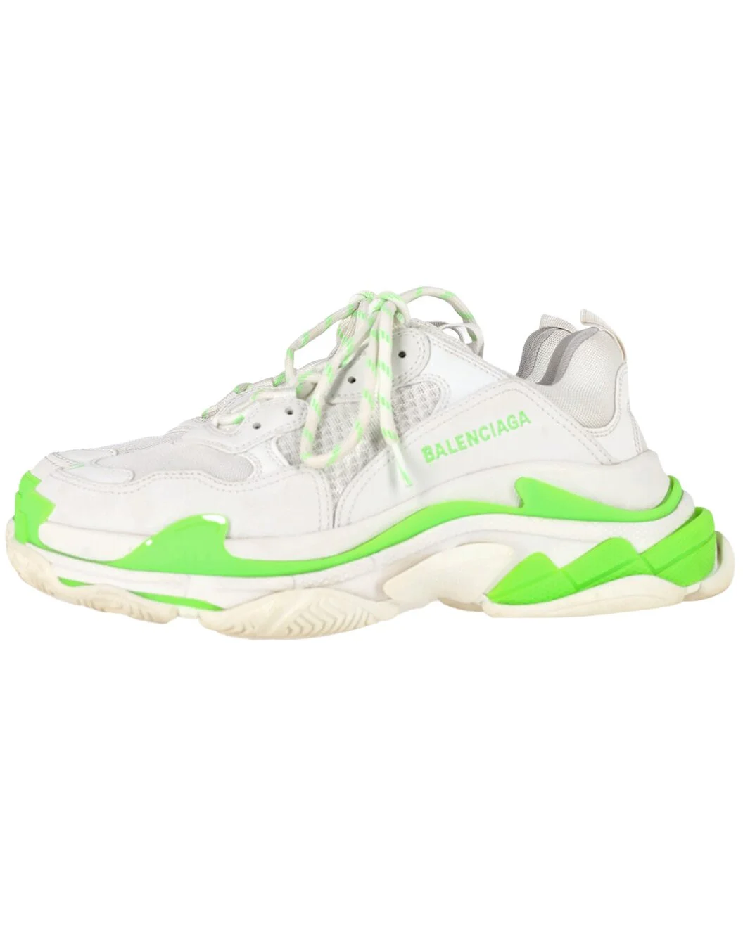 - About the brand: Recognized as one of the most influential names in fashion, Balenciaga has a reputation of uncompromising standards. Unmistakable, ultra-modern shapes and high-concept collections set Balenciaga apart, from runway to ready-to-wear. High-end collaborations and a renewed focus on fine-crafted handbags and footwear earn the brand a coveted spot as a viral, celebrity favorite. - This is an authentic, pre-loved piece. This item is in very good condition and shows light signs of wear. This item shows lightly used but very well maintained, may show minor signs of wear, scratches, worn corners, minor interior wear. - For more information on condition, please see our condition guide at the bottom - Color/material: white polyester - Design details: Make a bold impact with the Balenciaga Triple S Sneakers, designed in white and neon green polyester with the brand's signature oversized silhouette. These fashion-forward sneakers blend athletic edge with high-fashion flair, offering both comfort and unmistakable street style. Styling tip: Pair them with neutral-toned joggers and an oversized hoodie or blazer to let the vibrant colors and chunky design stand out. - 2.75in heel - 12.5insole length - Accompanied by dust bag - Please note: All measurements were taken by hand and are approximate; slight variations may occur. - Available only in Women's size EU 41 - The Pre-Loved Condition Guide - Our products are 100% genuine. In some cases we purchase merchandise from trusted independent suppliers and not directly from the brand owner. In all cases we stand by the authenticity of every product sold on our site.