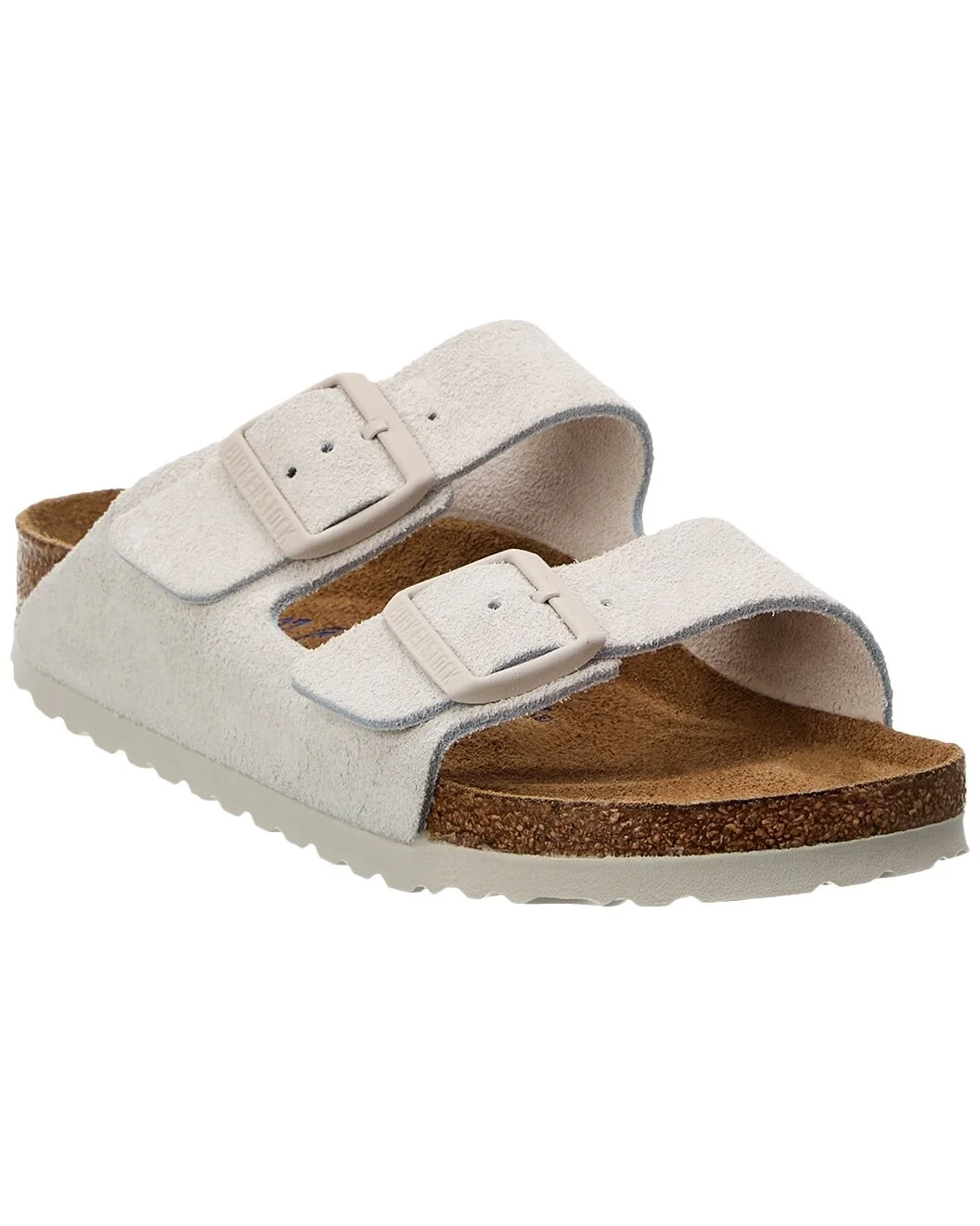 - About the brand: Iconic and sustainable designs that are always on-trend. - Please note: Size selections are European. For US conversions, please reference size chart. - Arizona Soft Footbed Suede Sandal in antique white suede and natural-tone hardware - Slip-on styling - Soft footbed - EVA Sole - Made in Germany