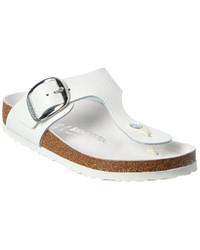 - About the brand: Iconic and sustainable designs that are always on-trend. - Please note: Size selections are European. For US conversions, please reference size chart. - Gizeh Big Buckle Leather Sandal in white oiled leather and silver-tone hardware - Buckle closure - Original Birkenstock suede-lined natural cork footbed that molds and shapes to your foot, featuring pronounced arch support, deep heel cup, and roomy toe box. - Man-made sole - Made in Germany